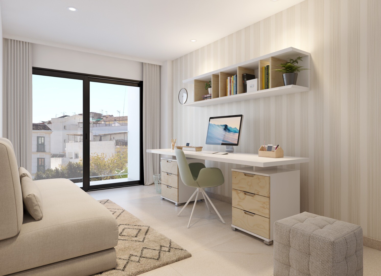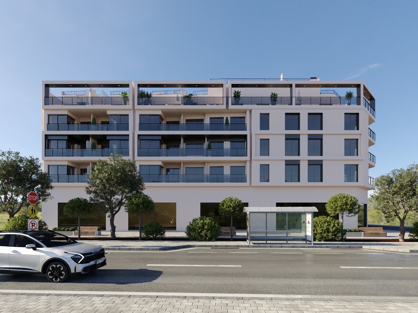 Unul dintre punctele forte ale proiectului este piscina comună situată pe acoperiș, un spațiu perfect pentru relaxare și bucuria climei mediteraneene, cu vedere spre oraș.