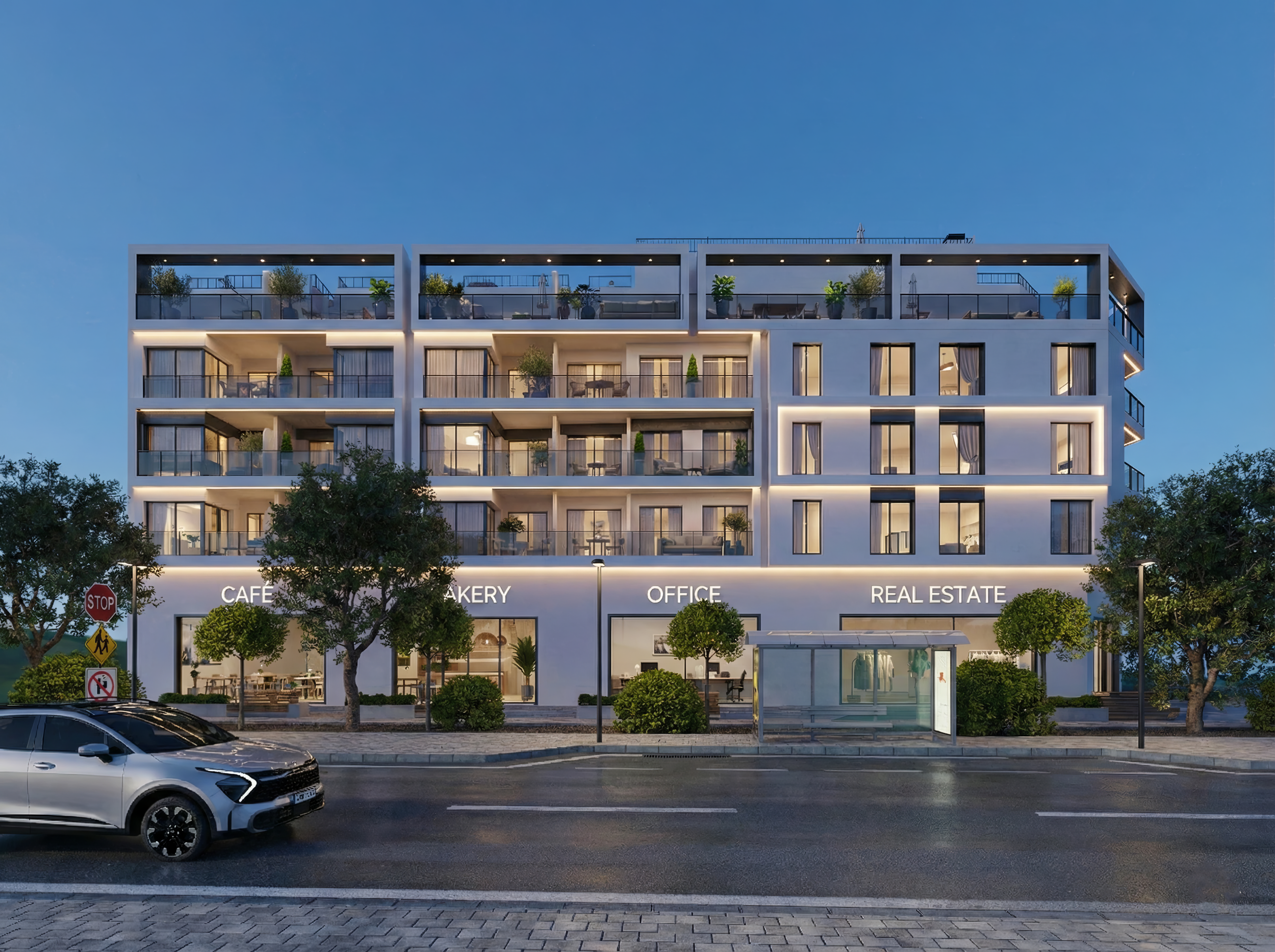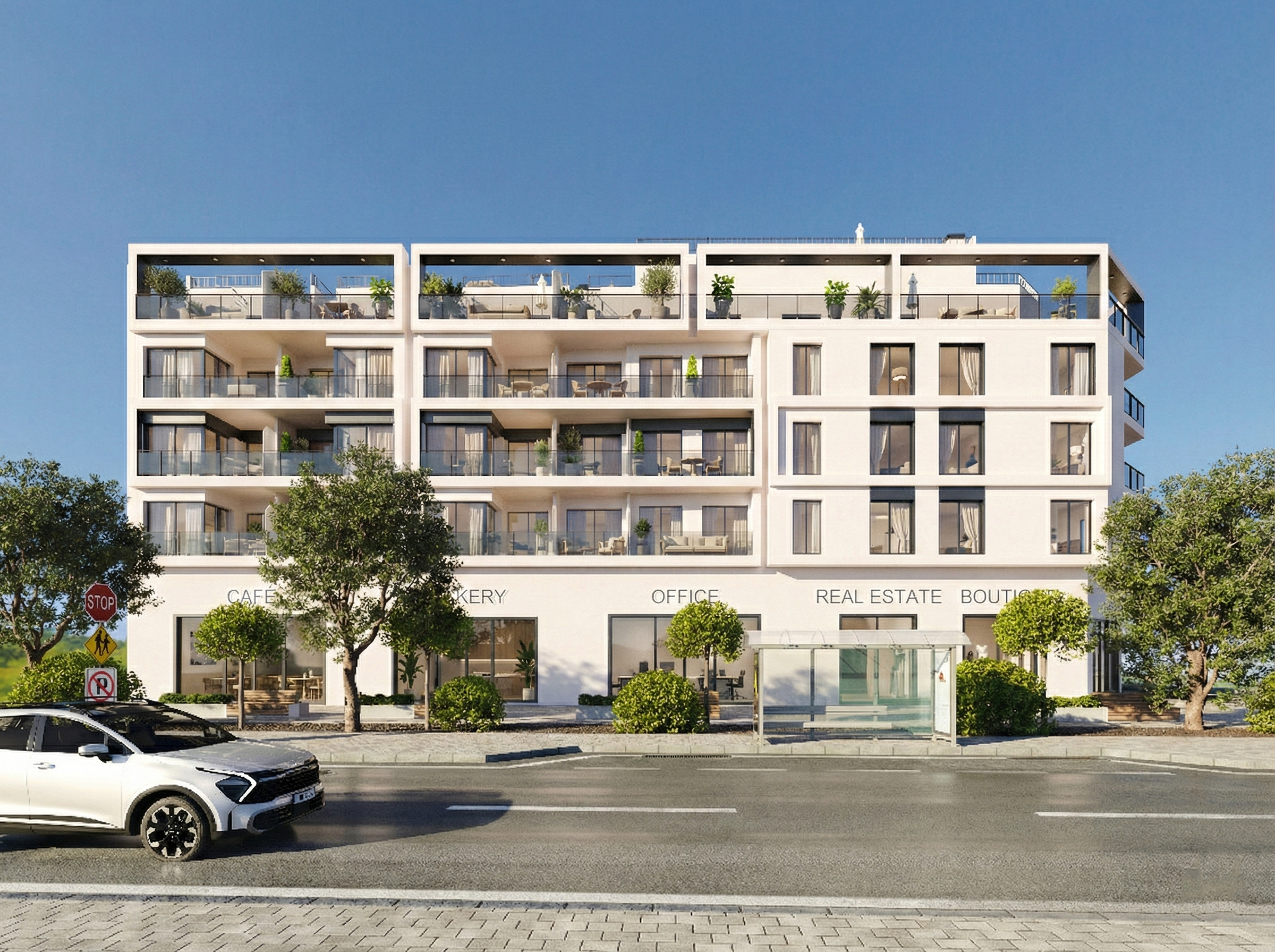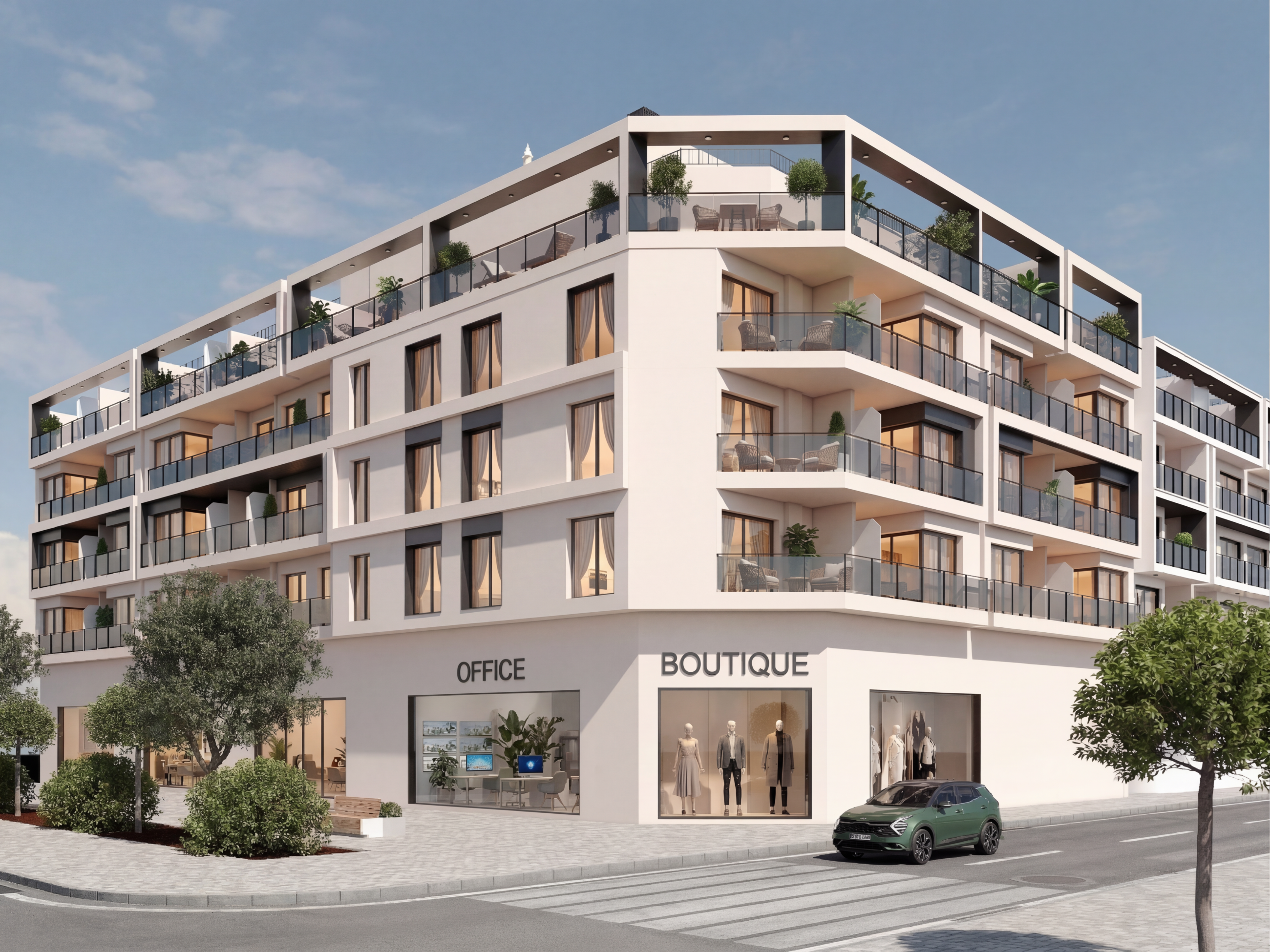 Clădirea include un total de 34 de apartamente distribuite pe mai multe etaje, toate finisate cu materiale de calitate superioară și spații optimizate. La parter se află un spațiu comercial, iar locurile de parcare (32) și boxele (20) sunt disponibile opțional pentru locatari.